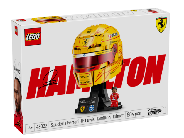 Lewis Hamiltonin vuosien varrella käyttämiin F1®-kypäriin perustuvassa keltaisessa pienoismallissa on Hamiltonin kuljettajanumero ja muita painettuja yksityiskohtia. Mukana tulee Lewis Hamiltonin minihahmo ja nimikirjoituslaatta. Valmis Lewis Hamiltonin kypärä on urheiluaiheinen koriste, jonka voi laittaa esille muiden LEGO® F1® kypärärakennelmien kanssa. 14+.