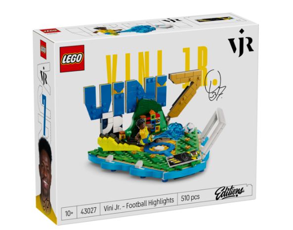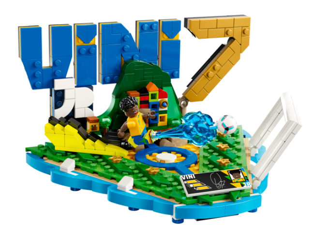 Juhlista brasilialaista jalkapallotähteä LEGO® Editions Vini Jr. – jalkapallon tähtihetket setillä, joka sopii yli 10-vuotiaille pojille, tytöille ja urheilufaneille. Pienoismallin jalusta muodostaa Vinin nimikirjaimet, ja setissä on Brasilian maajoukkueen värit, Vinin pelinumero ja keräilykyltti, jossa on Vinin pelaajatilastoja ja nimikirjoitus. Vini Jr:n minihahmo maalintekotuuletuksessa herättää jalkapalloaiheisen setin eloon. 10+.