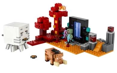 Lapsille sopiva rakennuslelu sisältää ainutlaatuiseen skiniin sonnustautuneen örkkisoturin hahmon, joka matkaa Minecraft Hornaportaalin halki karmiinimetsän katveessa basalttideltan maisemissa. Pelaajat seikkailevat sienien valtaamien puiden täyttämässä metsässä ja taistelevat pelistä tuttuja mobeja vastaan. Setti sisältää 2 magmakuutiota, hoglinin, jonka puskevaa päätä voi käyttää sormella, sekä kiekkoja suustaan syöksevän Minecraft-hornanhengen hahmon. Jännitystä riittää yllin kyllin, sillä pelaajat jäävät portaaliin jumiin ikiajoiksi, jos hornanhenki ehtii tuhoamaan sen! Nuoret rakentelijat ihastuvat varmasti myös LEGO Builder sovellukseen, jossa he voivat zoomata ja kiertää malleja 3D-näkymässä sekä seurata edistymistä.