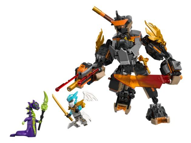 Robotilla on 3 asetta: miekka, sauva ja jousitoiminen ase, jossa on 2 nuolta. Aseita voi vaihtaa erikseen myytävän Riyu-ninjalohikäärmesetin (71855) aseiden kanssa. NINJAGO-lelusetti sisältää leikkejä varten myös 3 minihahmoa: Colen nuijineen, Lohikäärme-Zanen miekkoineen sekä happohirviön sauvoineen.