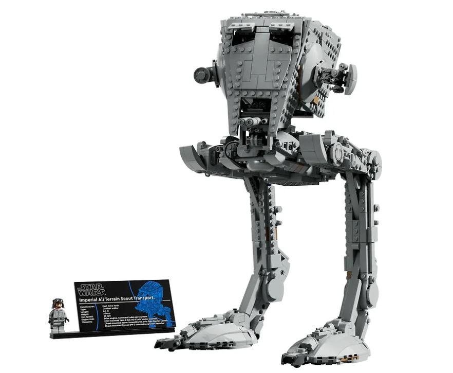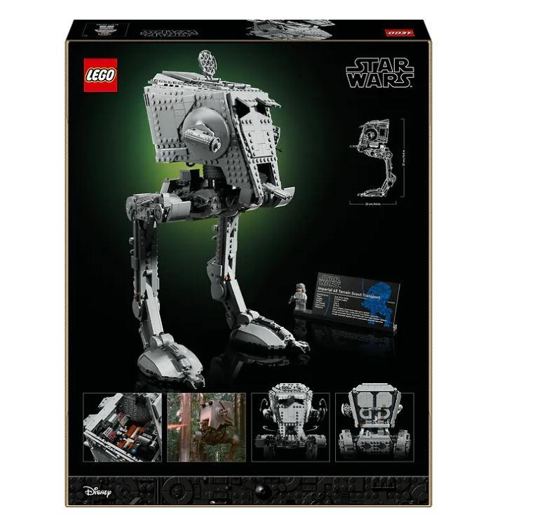 Rakenna LEGO® Star Wars™ Ultimate Collector Series versio AT-ST-talsijasta, joka on tuttu Star Wars saagan taistelutantereilta. Rakenna LEGO® palikoista maastoon kuin maastoon sopivan kulkuvälineen tutut yksityiskohdat, joihin lukeutuvat muun muassa huomiota herättävät jalat ja avattava yläluukku 2 hahmon mentävään yksityiskohtaiseen ohjaamoon. Käännä AT-ST:n ”päätä”, avaa ja sulje tähystysluukkujen läpät ja säädä lasertykkejä. Laita luomus esille AT-ST-tietokyltin ja AT-ST-kuljettajan LEGO® Star Wars™ minihahmon kera, minihahmolla on sädepistooli ja käsissä kuvat Imperiumin vaakunasta. 18+.