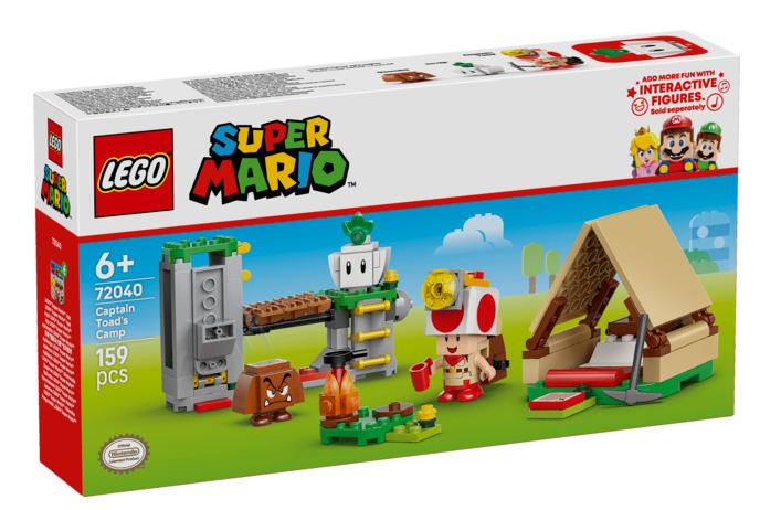 Rakenna palikoista teltta ja nuotio, etsi aarre, romauta silta ja nujerra viholliset Captain Toad retkellä ‑setin seikkailuissa. Nintendo® LEGO setissä on mukana Captain Toad, Turnip-nauris ja Goomba-hahmo sekä rakennettava reppu, hakku, pannu ja timantti. Auta Captain Toad ‑hahmoa romauttamaan silta ja pudottamaan vihollinen laavajokeen, etsi timantteja ja laita ne talteen aarrearkkuun ja rentoudu teltassa. Laita LEGO® Mario™, LEGO® Luigi™ tai LEGO® Peach™ hahmo (hahmot eivät sisälly pakkaukseen) hyppäämään teltan toimintotunnisteen päälle, niin luvassa on digitaalisia reaktioita. 6+.