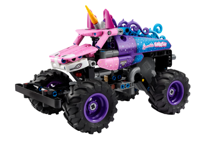 Yksisarvishenkisessä Sparkle Smash ‑monsteriautossa on sen esikuvasta tuttuja yksityiskohtia, kuten kimaltelevia tähtiä ja yksisarvisen sarvi. Rakennettava monsteriautolelu sopii lahjaksi pojille, tytöille ja kaikille, jotka pitävät LEGO® ajoneuvoista, yksisarvisleluista, vetomoottoriautoista tai mahtavasta Monster Jam ‑menosta.
