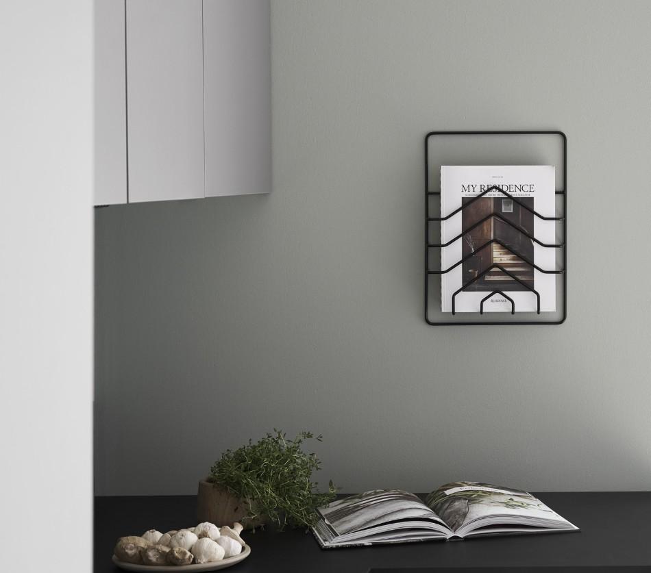 materiaali epoksi/teräslanka. Lehtiteline kiinnitetään seinään ruuveilla. Lehtitelineen mukana toimitetaan mustat kiinnitysruuvit, jotka viimeistelevät asennuksen. Lehtitelineen materiaali on korkealaatuinen teräslanka, joka on jauhemaalattu iskunkestävällä epoksimaalilla. Lehtiteline on muotoiltu ja valmistettu Suomessa.