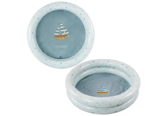 Oletko valmis vesileikkeihin? Lämpiminä päivinä Sailors Bayn uima-allas on helppo täyttää ja pystyttää puutarhaan. Kun allas on täytetty vedellä, lapsesi voi nauttia ihanasta uinnista vilvoitellen. Hauskanpito on taattu! Sinisessä altaassa on tuttu Sailors Bayn logo reunalla ja pohjassa näkyy veden läpi suuri purjevene. Altaan halkaisija on 80 cm.