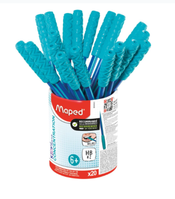 Mapedin KidyLearn Concentration on tuotesarja, joka on kehitetty yhteistyössä opettajien ja psykologien kanssa. Nämä innovatiiviset tuotteet tarjoavat aististimulaatiota lapselle mikä voi auttaa keskittymään ja lievittämään stressiä.Hinta sisältää 1 kynän.