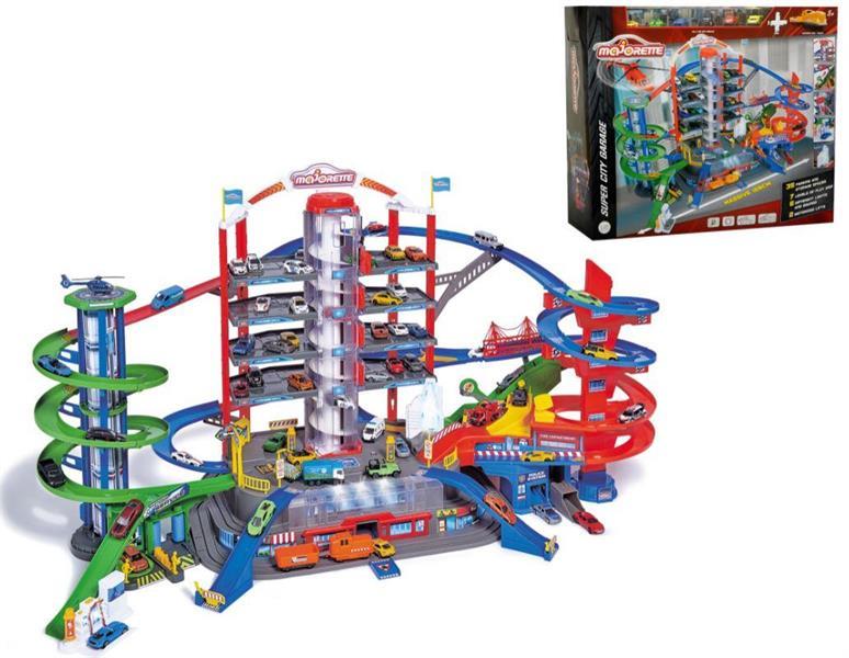 Pikkuautolla leikkiminen on nyt entistäkin hauskempaa tämän valtavan upean parkkihallin parissa! Majorette Super City Garage -leikkisetti on huikea 7-kerroksinen parkkihalli, jonka parissa riittää puuhaa ja vauhtia! Parkkihallissa on mm. 2 paristokäyttöistä hissiä autojen siirtelyyn ja erilaisia ääni- sekä valotoimintoja.