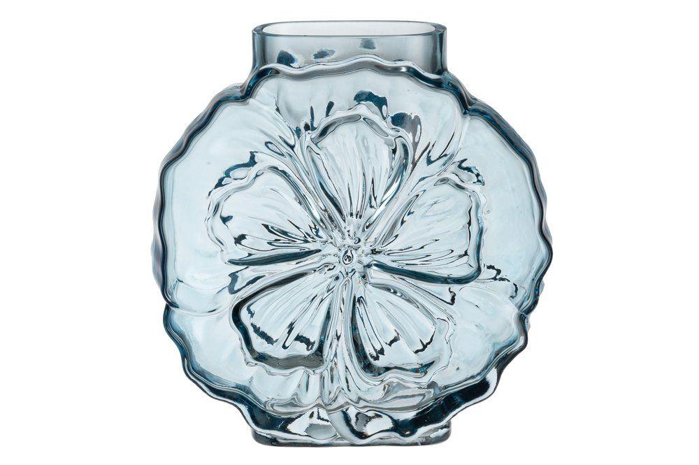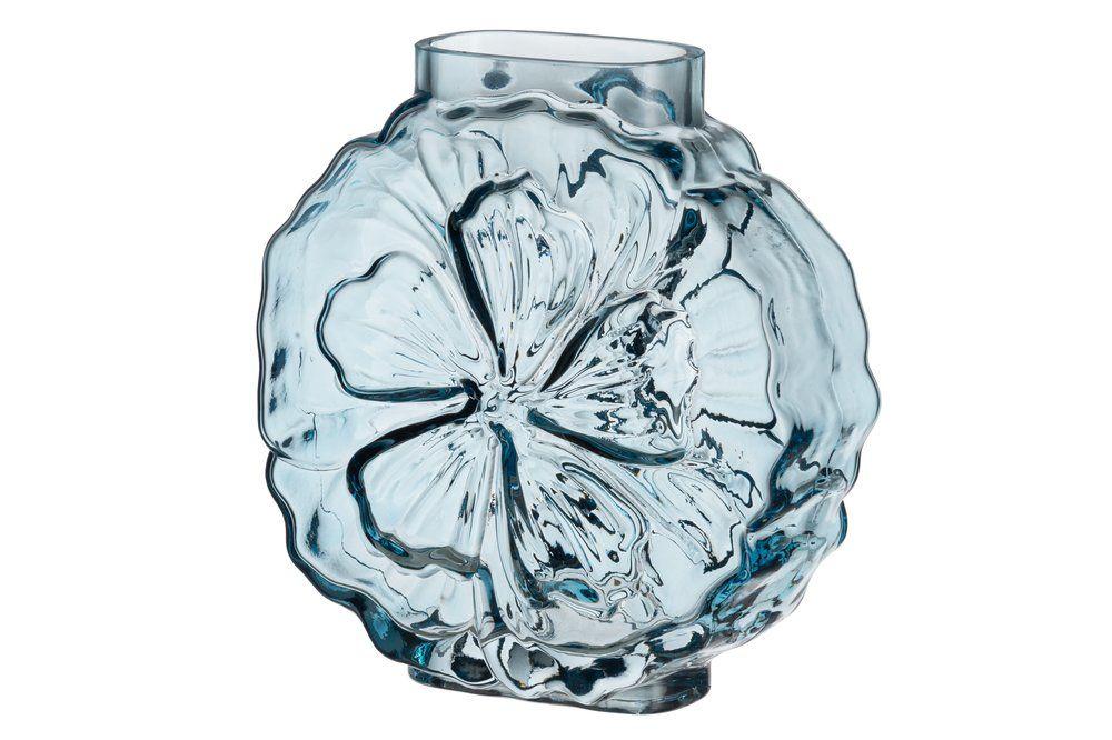 Läpikuultava vaaleansininen maljakko, kaunis kukkateema. Pintavärjättyä lasia. Tuote on käsinvalmistettu. Yksilölliset erot mahdollisia. Korkeus 20 cm. Käsinpesu.