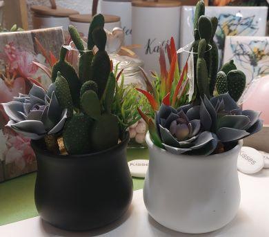 Hinta käsittää yhden mehikasvin. Lajitelma mehikasvi valkoisessa purkissa tai mustassa purkissa.