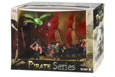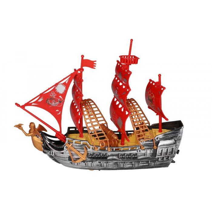 Hii-ohoi! Maata näkyvissä! Värikäs merirosvoleikkisetti kutsuu seikkailuun maailman merille. Pakkaus sisältää merirosvolaivan ääni-ja valotehosteilla, kapteenin ja kaksi miehistön jäsentä, soutuveneen ja muita tarvikkeita. 3 x AG13 paristot sisältyvät pakkaukseen. Ikäsuositus 3+.