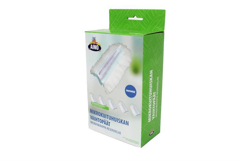 Pakkaus sisältää kuusi vaihtopäätä Aino -mikrokuitupölyhuiskaan.