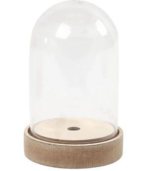 Korkea, kirkas muovikupu, jossa irtonainen MDF-jalusta sekä pohja samaa materiaalia. Pohjan reiästä (35mm) voi ujuttaa paristokäyttöisen valonauhan