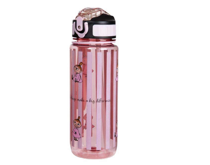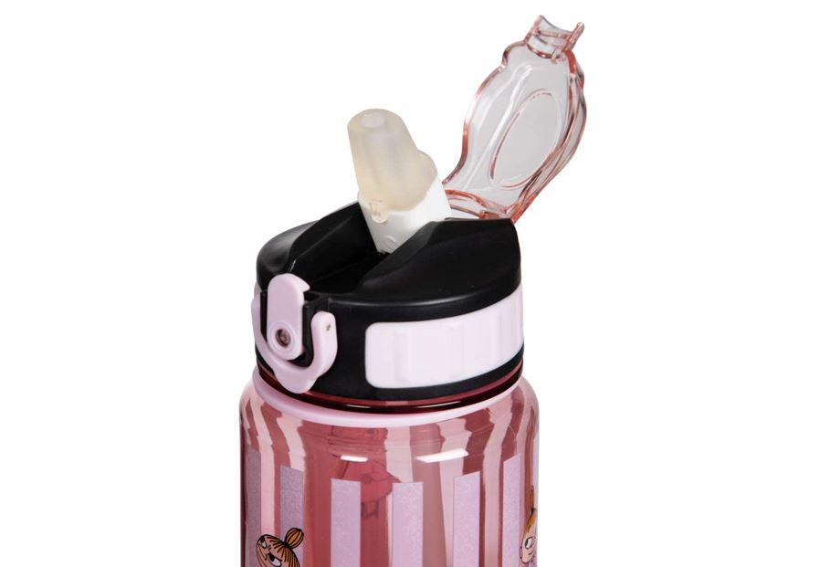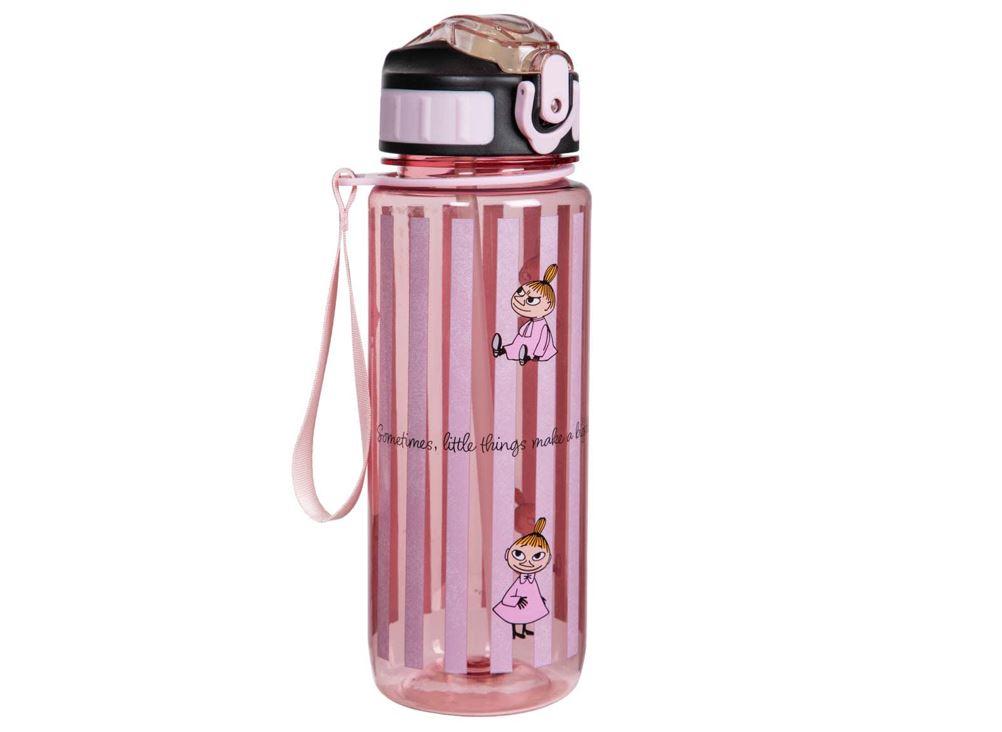 Ihastuttava ja erityisen kätevä tritan-muovista valmistettu pinkki Muumi-juomapullo ilahduttaa Pikku Myy -kuvituksellaan. Pullon tilavuus on 8 dl. Pullossa on kantohihna, tiivis korkki sekä näppärä pienen kannen alle taittuva pilli, jonka juomaosa on miellyttävän pehmeä. Pullosta on mukava juoda, minkä lisäksi se on helppo puhdistaa ja kuljettaa mukana töihin, reissuille, treeneihin tai vaikka mukaan kouluun. Iloa joka päivään!