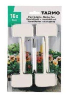 16 kpl muovisia 15 cm korkeita nimikylttejä, joiden avulla taimet on helppo merkitä tunnistamista varten. Mukana merkkauskynä.