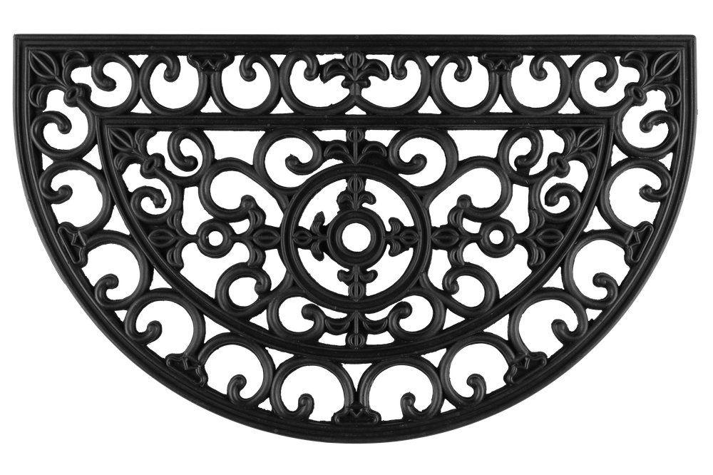 Luonnonkumista valmistettu puolikuun muotoinen kynnysmatto on kestävä ja helposti puhdistettava. Vähentää tehokkaasti sisätiloihin ajautuvan lian määrää. Koko 45 x 75 cm. Paksuus 10 mm. Materiaali luonnonkumi. Puhdistetaan huuhtelemalla.