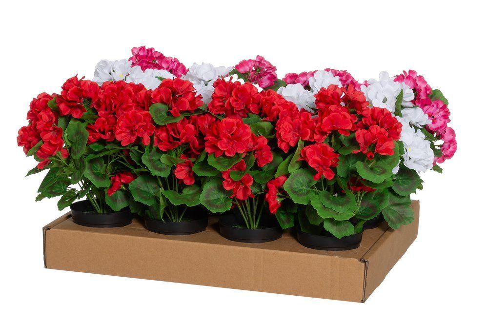 Tekokasvit ovat helppo ja tyylikäs tapa piristää kodin tai toimiston ilmettä, tai istuttaa niitä paikkoihin, joissa aidot kukat eivät viihdy. Ne sopivat erinomaisesti myös lemmikki-, lapsi- ja allergiaperheisiin. Tekokasvit eivät vaadi hoitoa ja ne voi sijoittaa paikkoihin, joissa oikeat kasvit eivät menestyisi. Pelargonia ruukussa, UV-suojattu.