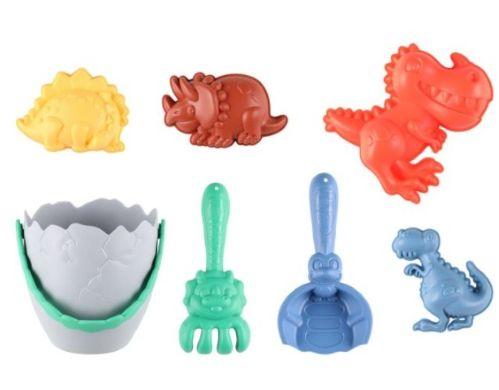 Ihastuttava hiekkaleikkisetti sisältää dinosauruksen munan muotoisen hiekkaämpärin, dino-teemaisia hiekkamuotteja ja hiekkatyökaluja. Ikäsuositus 3+.