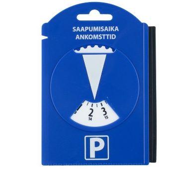 Pysäköintikiekko sisältäen jääraapan, kumisen ikkunanpyyhkimen sekä tuulilasinpyyhkimen sulan puhdistusuran.