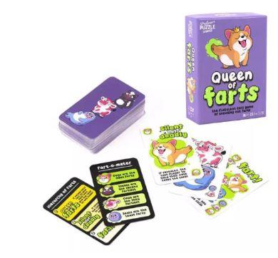 Sneak out a fart without the other players catching wind in this hilarious game of gas! Just play a matching animal to get rid of your cards, but beware! Some are much fartier than others. If someone smells a fart and it turns out to be you, it could cause a real stink. Will you be crowned Queen of Farts or will you be left with a bad taste in your mouth?