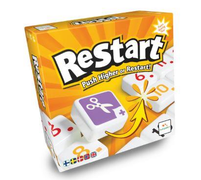 Restart -pelissä saa pihistellä ja padota mikäli oikeat numerot ovat osuneet laatoissa kohdalle. Hauska perhepeli, joka pitää jännityksen yllä loppuun asti! Pelin voittaa ensin laatoistaan eroon pääsevä pelaaja – tai se pelaaja jolla on pelin lopussa vähiten pisteitä. Pelin strateginen syvyys syntyy erikoislaatoista, kuten RESTART- ja END-laatoista, jotka voivat muuttaa pelin suunnan hetkessä! Lisäksi sakset ja roskakori tarjoavat mahdollisuuden poistaa tai hävittää laattoja, mikä tuo peliin lisää taktikointia. Restartin haluat aloittaa aina uudelleen ja uudelleen!