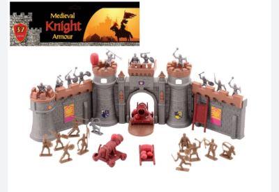 Käy taistelu linnan herruudesta! Mahtava ritarilinna tarvikkeineen! Pakkaus sisältää runsaasti taisteluasennoissa olevia kullan- sekä hopeanvärisiä ritareita sekä muuta kalustoa, kuten tykit ja tykinkuulat. Linnassa avautuva portti. Ritarin korkeus noin 6 cm. Ikäsuositus 4+ vuotta. Tuotteen mittatiedot: 47 x 33,5 x 9,5 cm – 0,432 kg