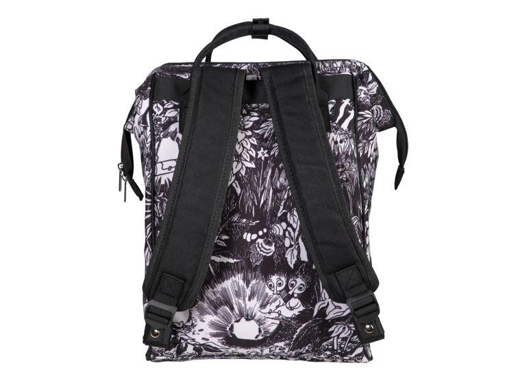 Kestävästä polyesterikankaasta valmistettu Samu-reppu avautuu kätevästi yläreunasta ja sitä koristaa upea Rubiini-kuosi. Repun sisällä on tilava tasku esim. läppäriä varten. Repussa on pehmustettu selkäosa ja pehmustetut, säädettävät olkahihnat. Etuosassa on tilava, vetoketjullinen tasku. Kantokahvat saa kiinnitettyä nepparilla yhteen. Repun metalliosat ovat hopeanväriset. Repun tilavuus on noin 15 litraa.