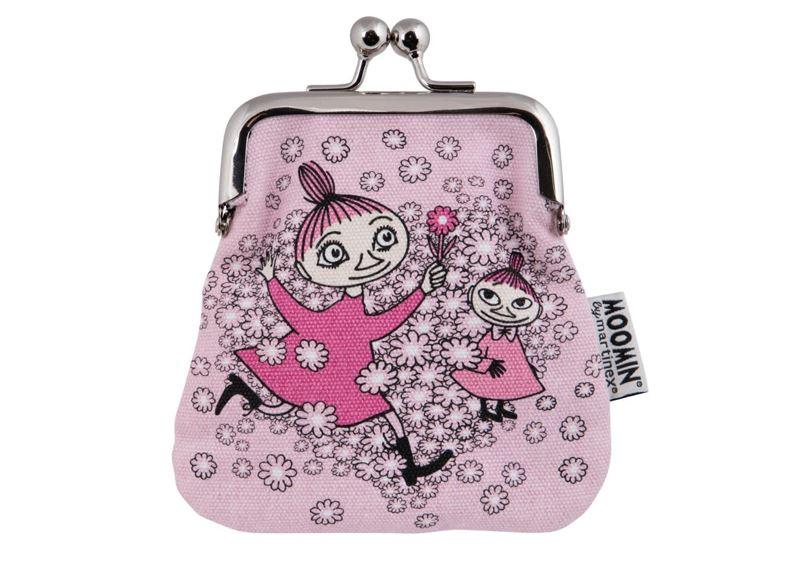 Tukevasta puuvillakankaasta valmistettu Muumi-aiheinen kukkaro ilahduttaa arjessa. Kukkarossa on metallinen nuppilukko. Metalliosat ovat hopeanväriset.