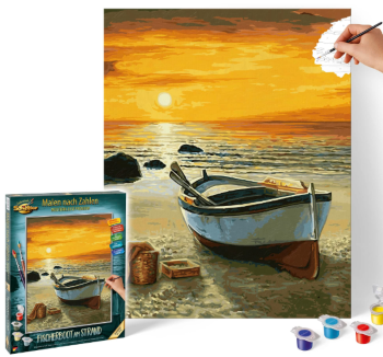 Kestävästä maalauskartongista tehty pahvilevy pellavakuviolla, 40 x 50 cm. Tarkat ääriviivapiirrokset helposti luettavilla numeroilla. Vesipohjaiset akryylimaalit. Värien sekoittamista ei tarvita. Hieno sivellin. Ohjauslomake ja yksityiskohtaiset ohjeet onnistuneeseen maalaamiseen.