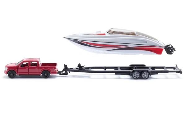 Ford F-150 vakuuttaa aidolla muotoilullaan, kumirenkaillaan ja näyttävällä lavallaan, joka tarjoaa runsaasti tilaa mielikuvitusleikkeihin. Autossa on luonnollisesti vetokoukku, jolla laadukas perävaunu kiinnittyy helposti. Vene itsessään on yksityiskohtainen pienoismalli kiiltävällä maalipinnalla ja aidontuntuisilla yksityiskohdilla, jotka saavat lapset tuntemaan olevansa keskellä suurta seikkailua.
