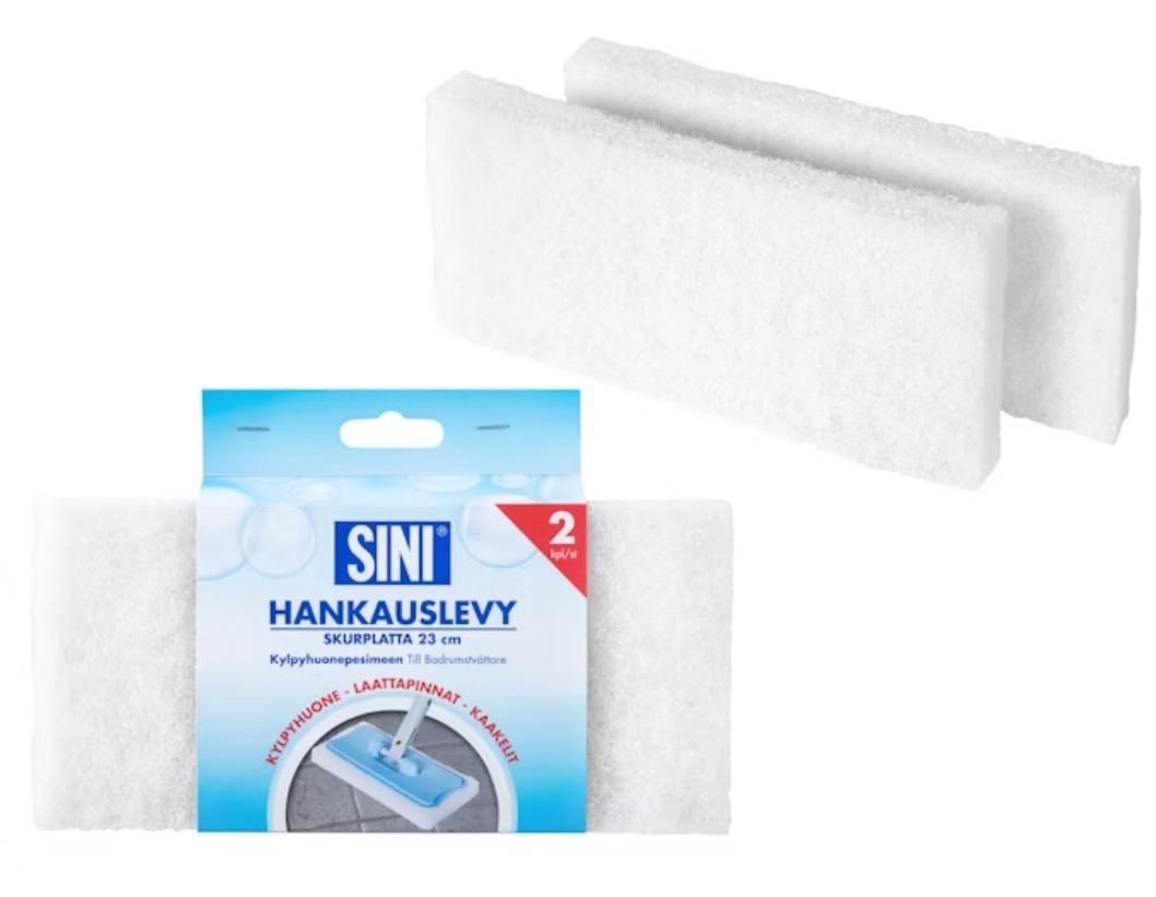 Kylpyhuonepesimeen tai pieneen monitoimimoppiin kiinnitettävällä 23 cm leveällä SINI hankauslevyllä poistat tehokkaasti ja naarmuttamatta tiukkaan kiinnittyneet tahrat lattiasta ja muilta vesipesua kestäviltä pinnoilta. 23 cm leveä. Pakkaus sisältää 2 kpl.