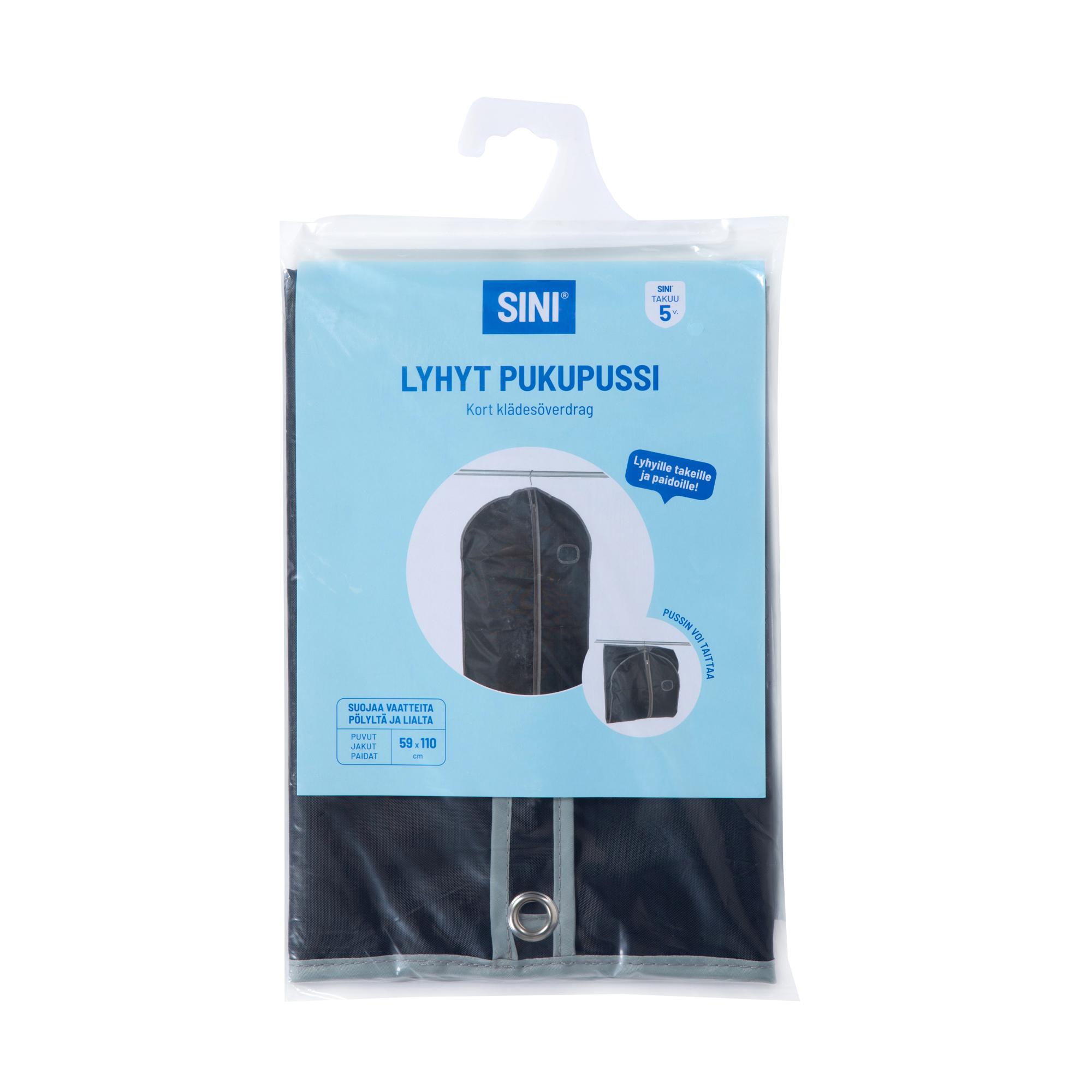 Lyhyt pukupussi sopii paitojen, hameiden ja pukujen säilytykseen vaatehuoneessa, -kaapissa tai varastossa. Pukupussi on valmistettu laadukkaasta polyesteristä, joten se kestää myös pakkasta. Tukeva vetoketju ja vahvat reunakanttaukset varmistavat tuotteen kestävyyden. Pussin yläosassa on aukko ripustinta varten. Pukupussin etupuolella on ikkuna, josta näkyy pussin sisältö. Pukupussin koko 100 x 60 cm. Värit valkoinen tai musta.