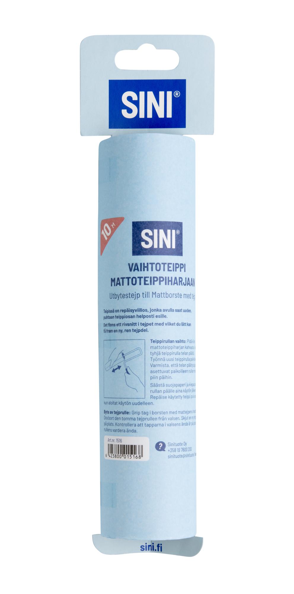 Vaihtorulla Mattoteippiharjaan. Mattoteippiharjalla puhdistat pienet roskat, pölyn, eläinten karvat ja hiukset tehokkaasti tekstiilipinnoilta. Leveän telan ansiosta työskentely on nopeaa. Liitä mattoteippiharja SINI-varteen: yletät puhdistamaan myös korkealta ja vältät kumartelun, kun puhdistat mattoja. Uusi rulla on helppo vaihtaa mattoteippiharjaan. Puhdista matot, huonekalut, tekstiilit ja autojen istuimet. Telamaisessa rullassa on 10 metriä teippiä. Valmiit viillokset, joiden kohdalta käytetyn teipin saa repäistyä pois. Vältä kumartelu ja kurkottelu: liitä Mattoteippiharja SINI-varteen. Suomessa suunniteltu ja valmistettu Avainlippu-tuote.