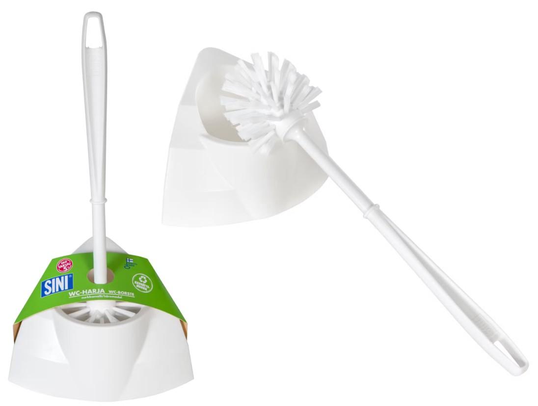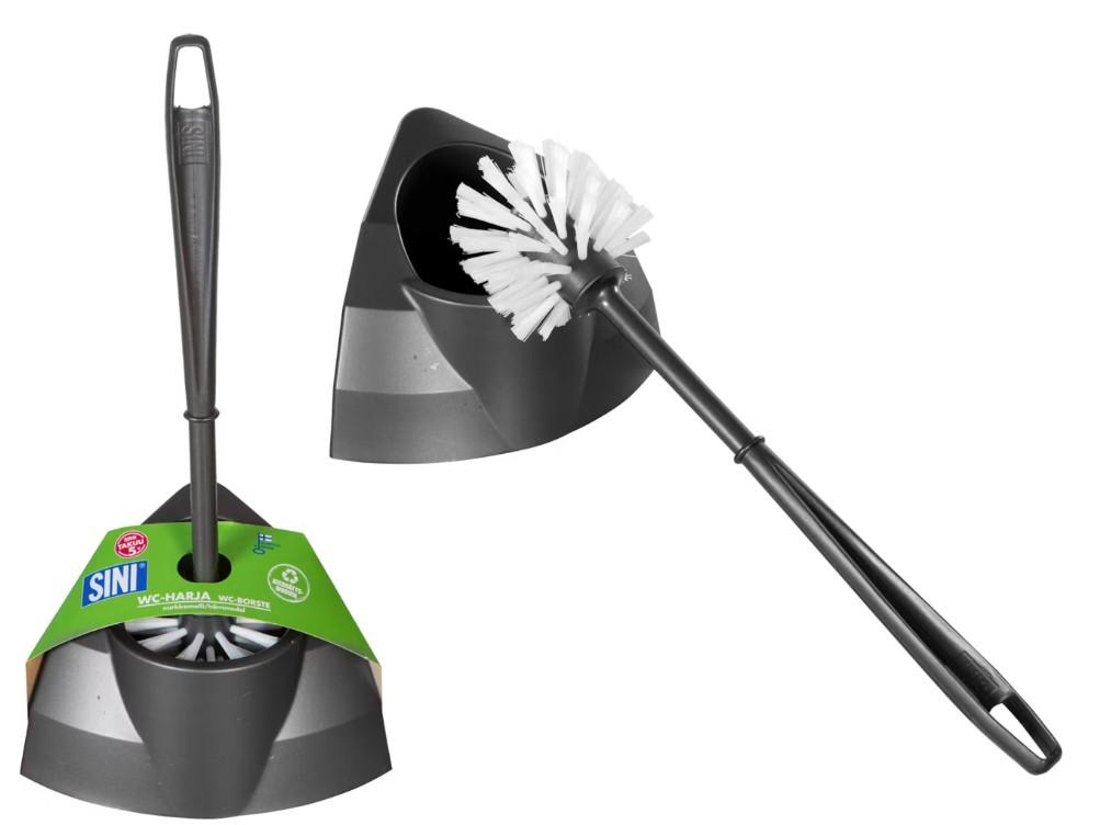 Nurkkamallinen wc-harja vie vain vähän tilaa, sillä kolmiomainen kuppiosa painuu seinän viereen aivan nurkkaan asti.