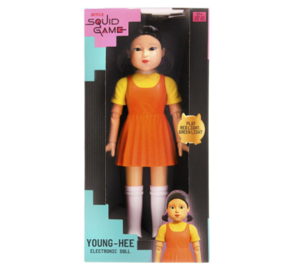 Pelaa Punainen valo, vihreä valo -leikkiä tämän Young-Hee Electronic Dollin kanssa, jonka tunnet Netflixin Squid Game -elokuvasta.