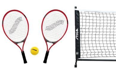 Stigan kokonainen minitennissetti, joka sisältää verkon, telineen, 2 mailaa ja pehmeän pallon. Sopii täydellisesti pihalle kesällä, mutta voidaan käyttää myös kaikilla alustoilla sekä sisällä että ulkona. Onnea peliin!