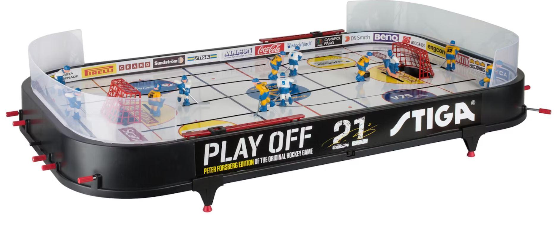Koko perheen klassikkopeli, jota on pelattu suomalaisissa kodeissa jo vuosikymmeniä! Tuttu Suomi-Ruotsi -versio, jossa pelaajat ohjaavat joukkueitaan varsiin kiinnitetyillä pelihahmoilla ja pyrkivät saamaan kiekon vastustajan maaliin.