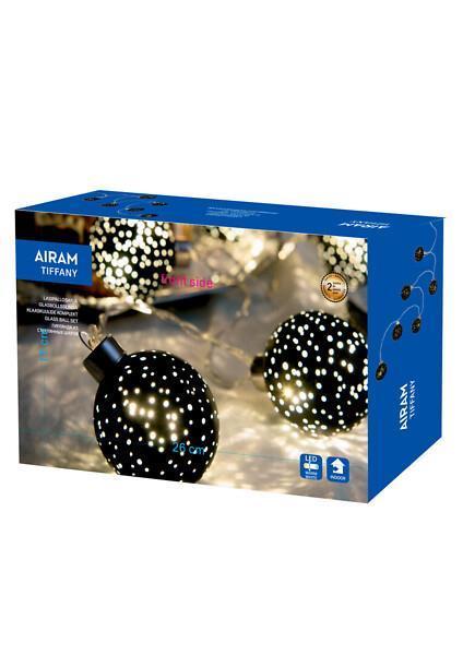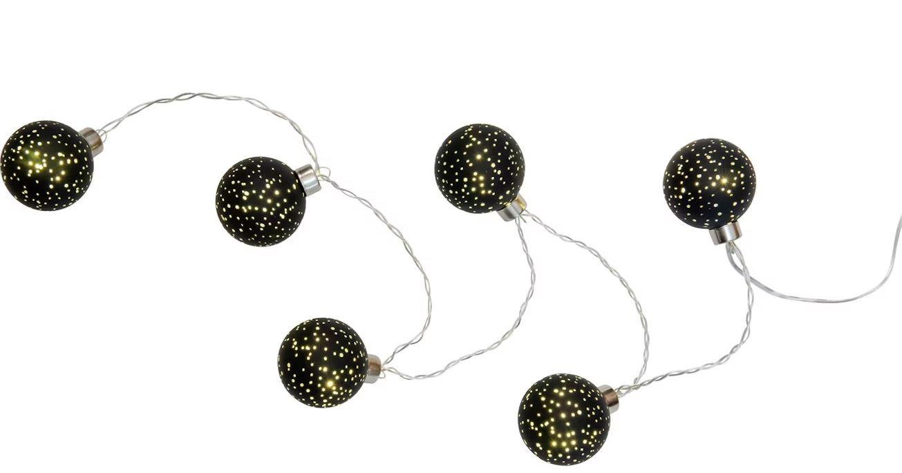 Upea mustanpuhuva valokoriste, jossa on seitsemän lasipalloa. Pallon halkaisija on 5 cm, pallojen etäisyys toisistaan 25 cm. Lasin pinnassa on pieniä pisteitä, joiden kautta valo kajastaa upeasti. Lasipallosarja on näyttävä sisustuselementti myös ilman että siinä on valo päällä.