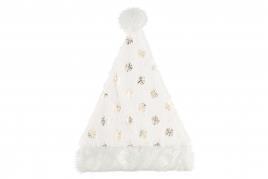 Suloinen valkoinen tonttulakki kullanvärisillä hiutalekuvioinneilla. Ihastuttava vaihtoehto perinteiselle tonttulakille. Koko 58 cm. Vesipesu kielletty.