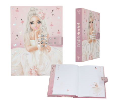 TOPModel Ballet -päiväkirja tuo musikaalisen twistin päiväkirjan pitoon: kun päiväkirja avataan, laulu alkaa soida! Yksityisyyden varmistaa koodilukitus, jonka koodin voi itse valita. Kirjassa on 80 viivoitettua ja kuvitettua sivua.
