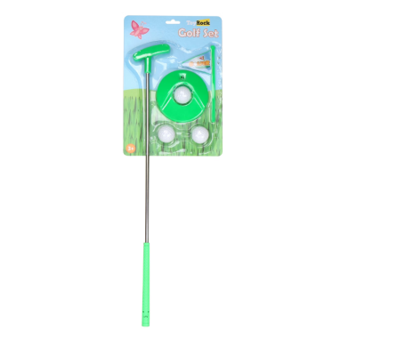 Harjoittele puttisi kuntoon kesäisen golf-setin avulla. Setti sisältää mailan, tähtäysmaalin ja kolme palloa. Useita erilaisia. Ikäsuositus yli 3-vuotiaille.