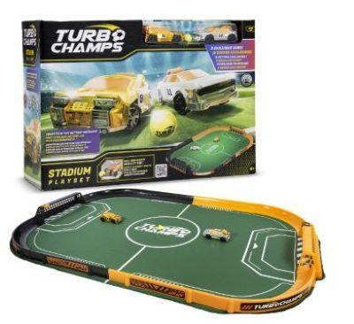Turbo Champs on pikkuautoilun ja jalkapallopelin vauhdikas yhdistelmä! Laukaise autosi vauhtiin ja hauska pallopeli voi alkaa. Kumpi joukkue voittaa? Leikkisetti sis. Turbo Champs -kentän (123 cm), pistelaskurit, kaksi ajoneuvoa ja pallon. 6+