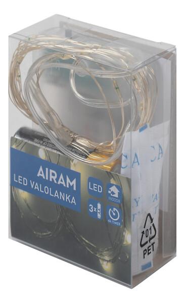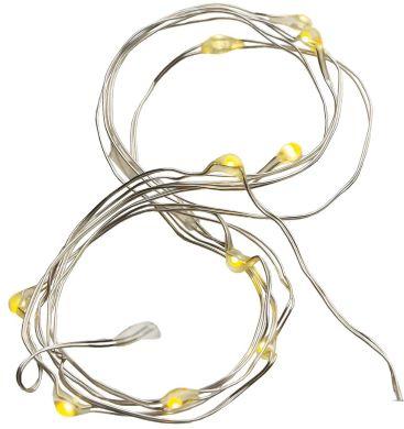Kaunis hopeansävyinen valolanka monipuoliseen koristeluun. Led lämmin valkoinen, ei vaihdettava, rinnankytketty. Sisältää paristot. Materiaali ohut metallilanka, johon pienet ledit on upotettu. On/off-kytkin.