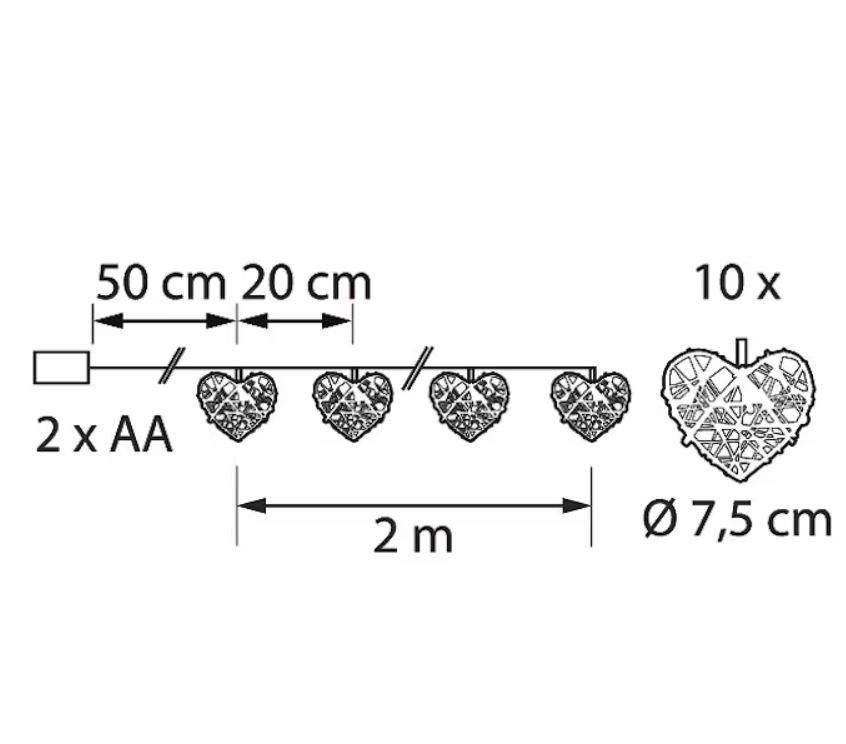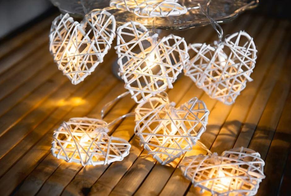 LED-sarja sydämenmuotoisilla rottinkivaloilla.