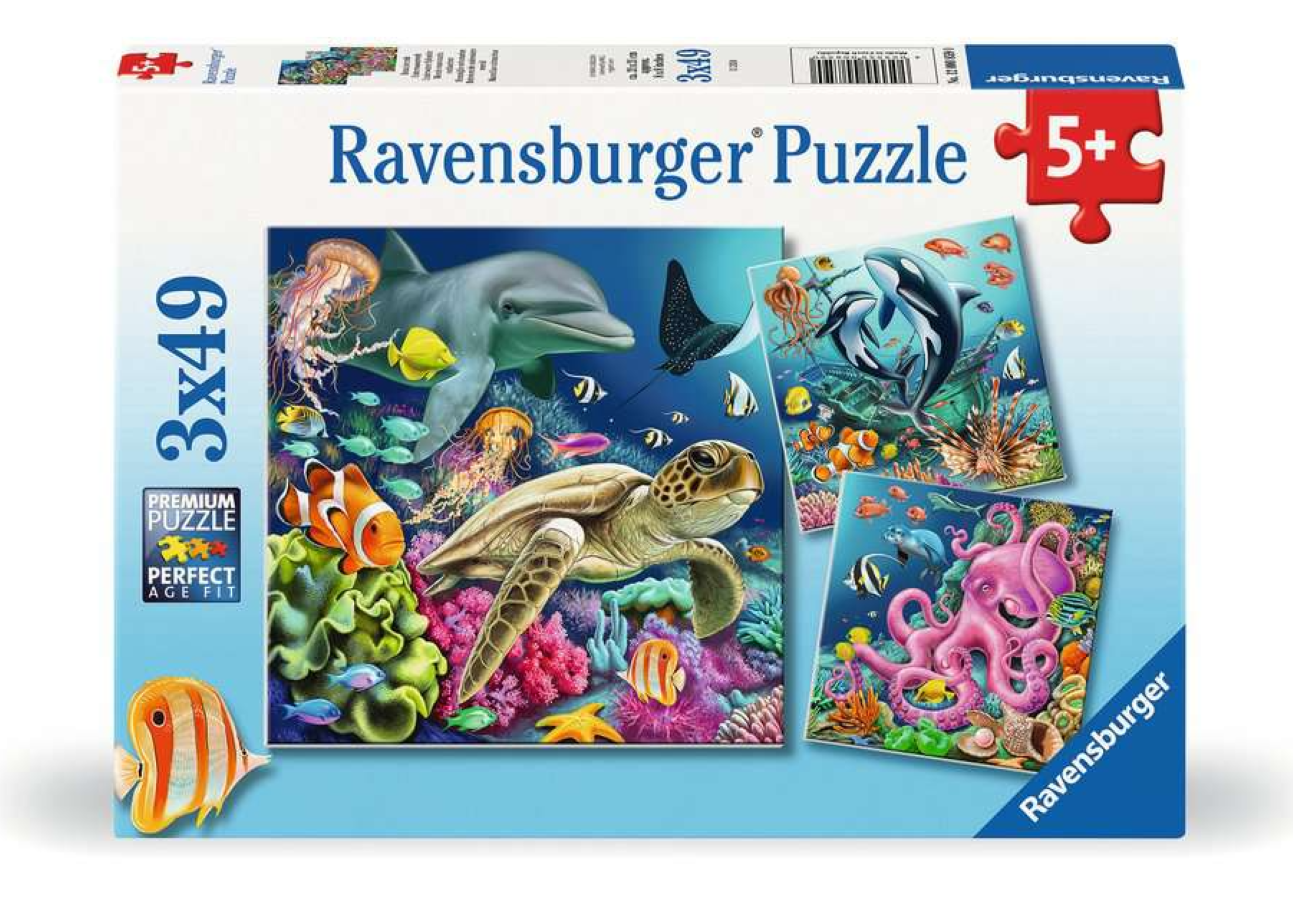 Under Water 3x49p Löydä täydellinen palapeli! Ravensburgerilta löytyy täydellinen palapeli jokaiselle lapselle. Mielenkiintoisten motiivien ja strategisten palakokojen sekä erilaisten formaattien ansiosta onnistuminen on taattu kaikissa ikäryhmissä ja kaikilla vaikeustasoilla. Nauti Ravensburger-laadusta tällä perheystävällisellä aktiviteetilla! Ikä 5+