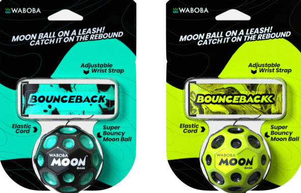 Pomppupallo, joka palaa takaisin! Waboba Bounceback on superpomppupallo, jossa on joustava hihna ja ranneke – nyt tämä arvaamattomiin suuntiin pomppaava pallo ei karkaa!Pomppupallolla leikkiminen on hauska tapa kehittää ketteryyttä ja reaktiokykyä. Pallon halkaisija 63 mm. Useita erilaisia. Ikäsuositus: 8+.